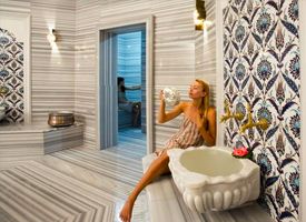 Turkish HamamYou will feel yourself renewed with the sauna, peeling (skin-rubbing), massage, heated marble and steam bath.